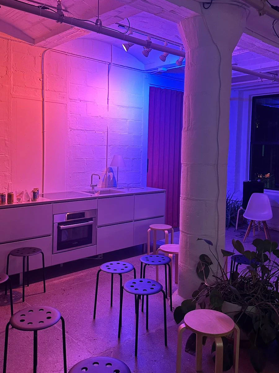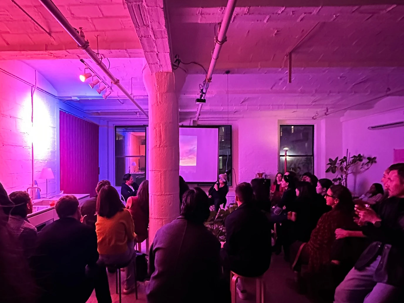 Ketra lighting was our technical sponsor for the evening. In collaboration with them, we pre-programmed eight distinct lighting scenes, each one designed to match the color temperature of a sky image selected by the speakers—capturing their personal memories and favorite moments of natural light. These dynamic scenes created an immersive atmosphere, allowing guests to experience how shifts in light color and intensity affect spatial perception and emotional response.