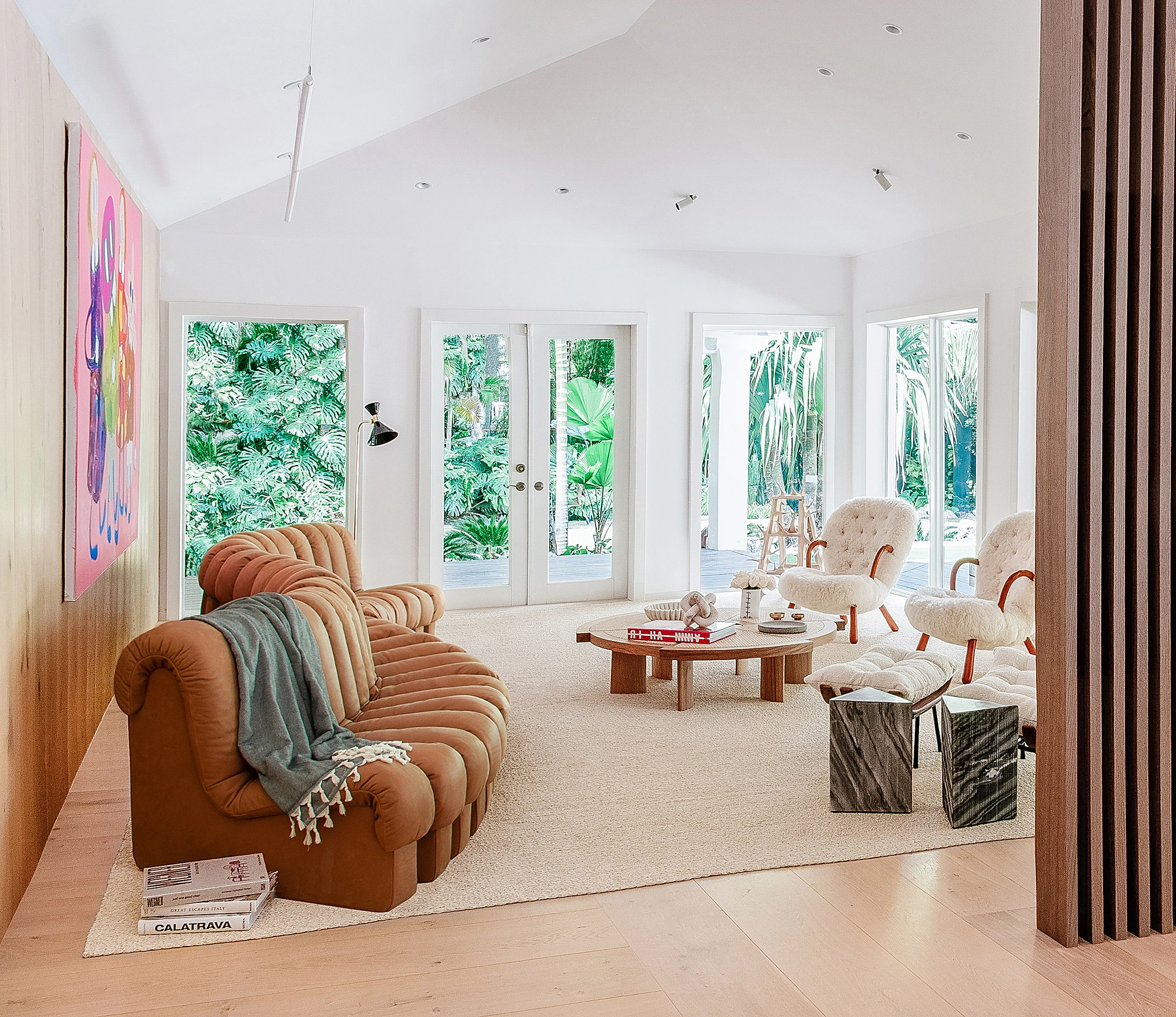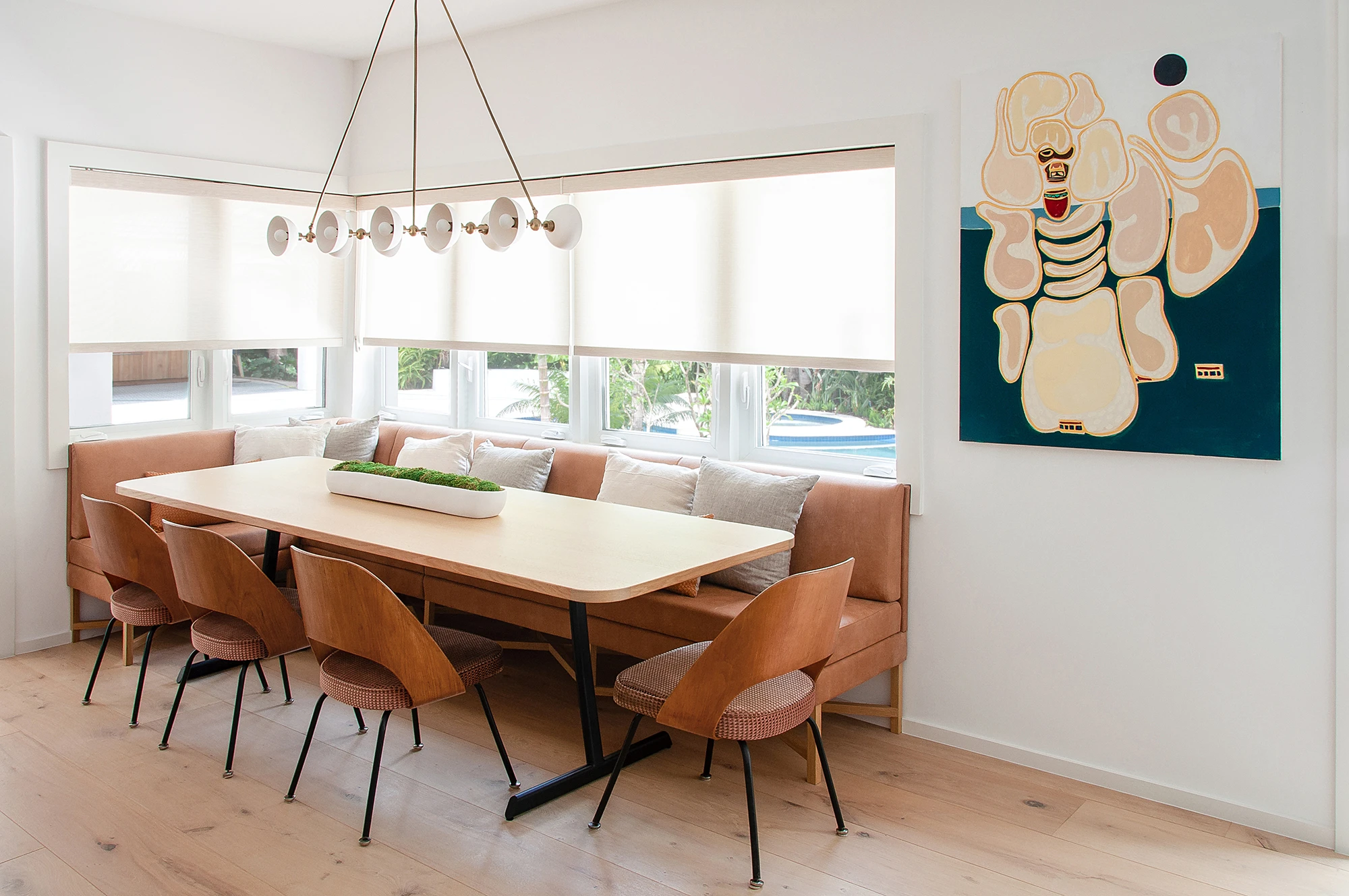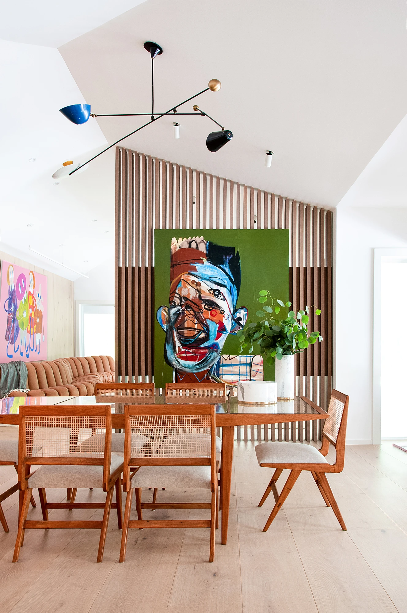 Studio Atomic designed the lighting for a Miami residence, a 6,700 square foot home with 1,000 square feet of outdoor space that seamlessly blends the owner's contemporary art collection with everyday living space to comfortably accommodate their large family.
