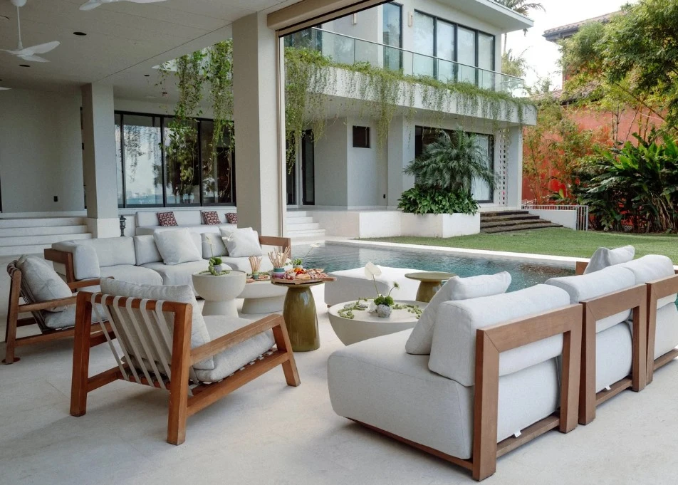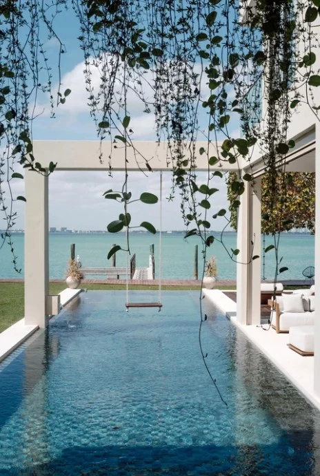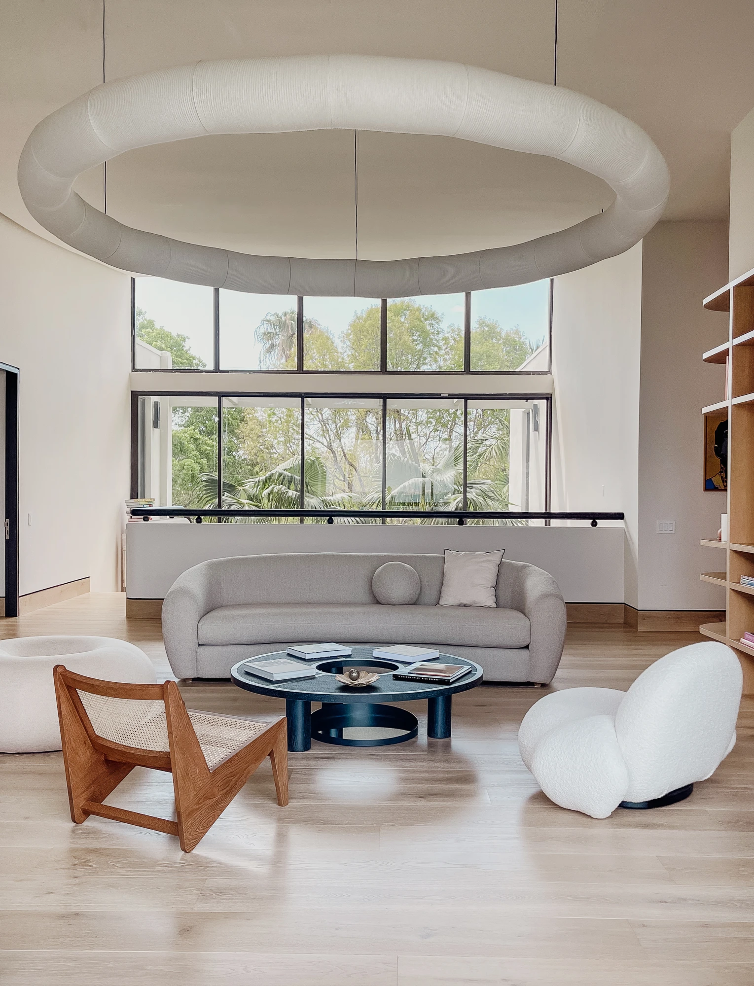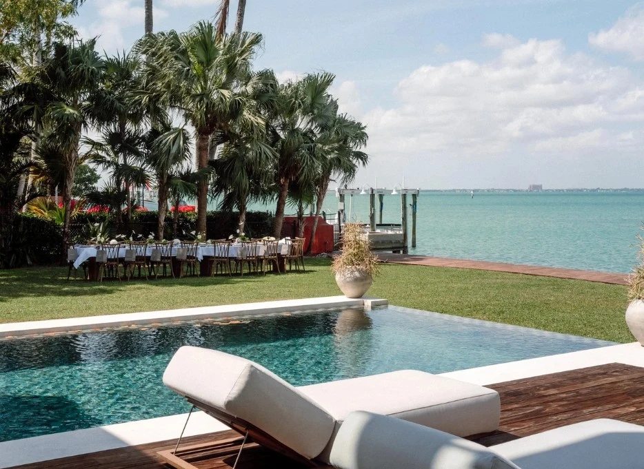 Located by the water in Key Biscayne, the villa frames uninterrupted views through a series of apertures that extend the interior toward the surrounding terraces. The architecture is defined by fluid, continuous lines and soft transitions between spaces, qualities that guided the lighting approach throughout the project.