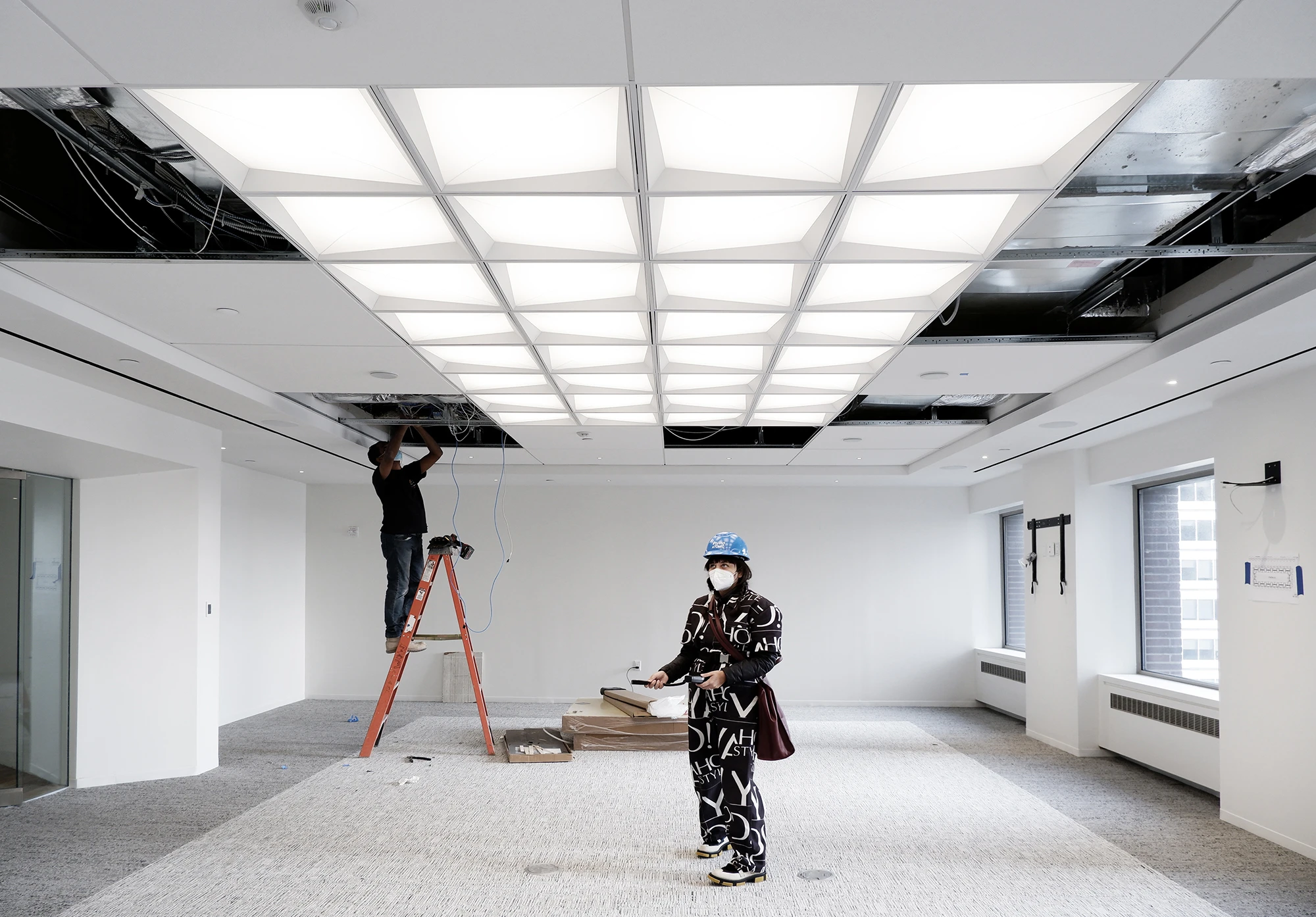 For the NYLAG project, Spacesmith Architects and Studio Atomic collaborated to create a lighting design that would reflect the values of the New York City civil legal services organization which focuses on combatting economic, racial and social injustice The 27,000 square foot space, spread over two floors in the financial district, was designed with versatility in mind.